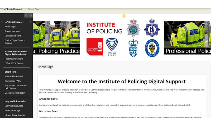 I created an IoP Digital Support module to support police trainers across our four partner police forces. I set this up as a Communication and Information hub.